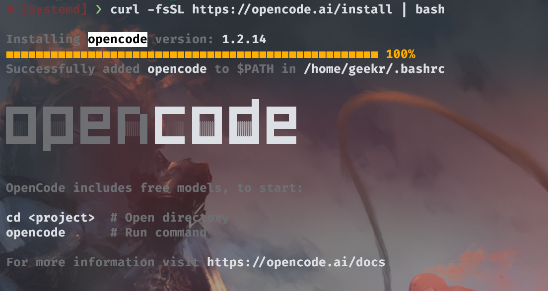 opencode: command not found,请尝试重新打开一个新的终端窗口,或者执行 source ~/.bashrc(如果你使用的是 Bash)或 source ~/.zshrc(如果你使用的是 Zsh)来加载环境变量。