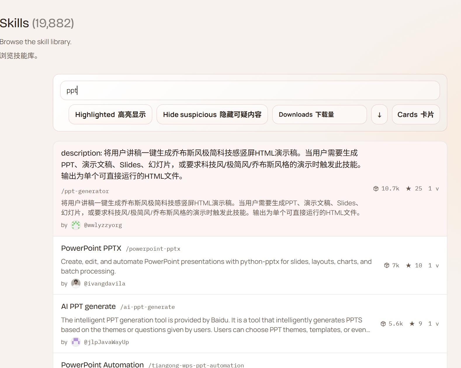 首先 ,我们需要在clawhub社区寻找到自己想要的skill,点击获取更多skills便可以进入: