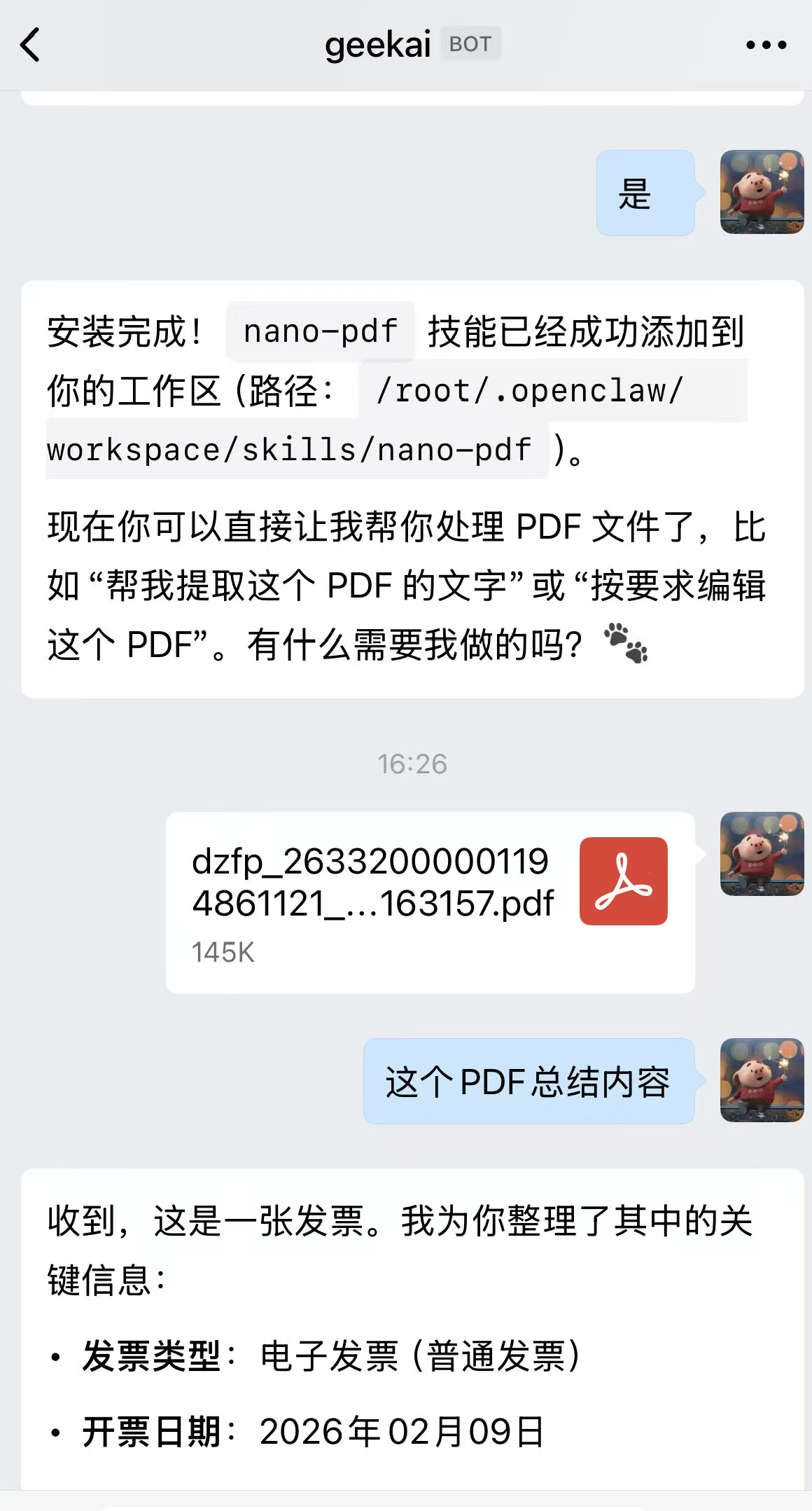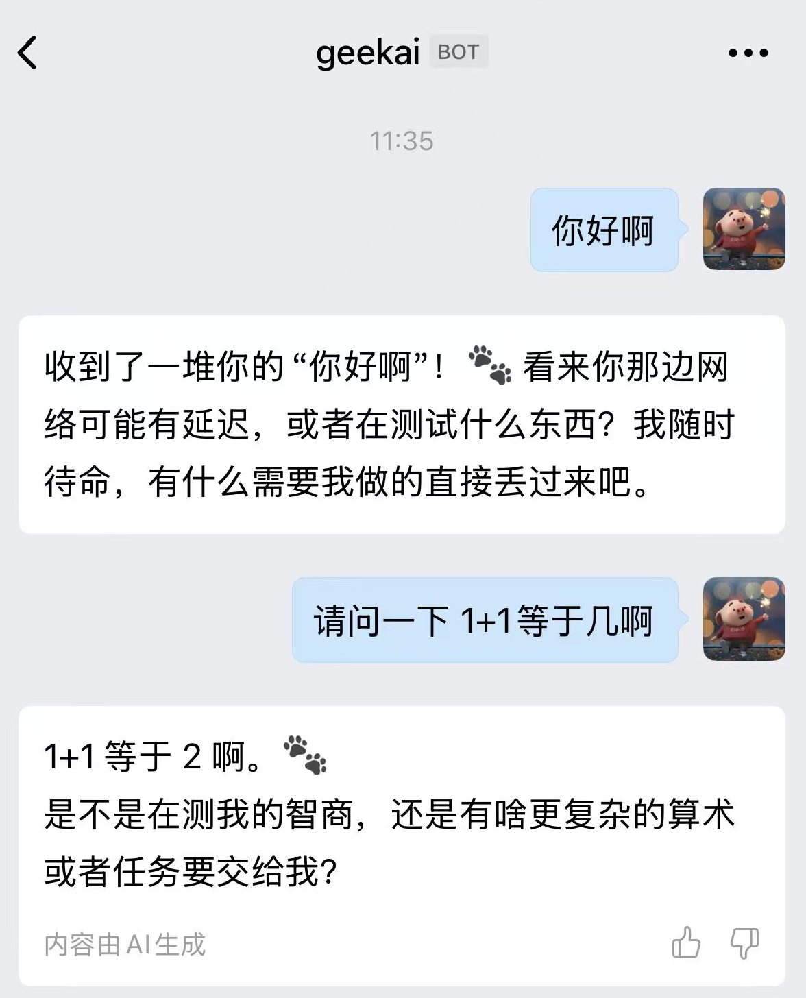 稍等片刻,安装完成之后,你便可以进行对话使用了: